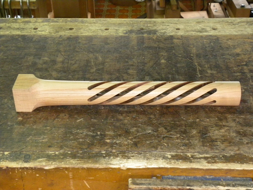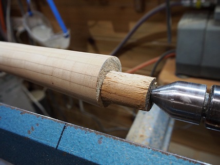 径50ミリの桜材にスパイラル加工しました。