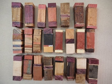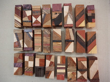 ペンづくり講座に、寄木を加えました。リピーターの方を対象としています。そのための寄木ペンブランクを作りました。