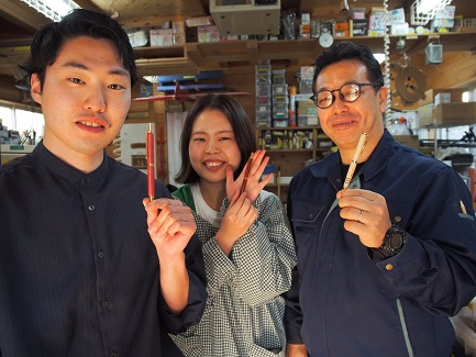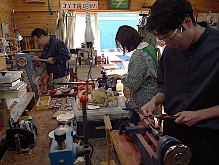 当工房では、一度に3人のペンづくりが可能です。