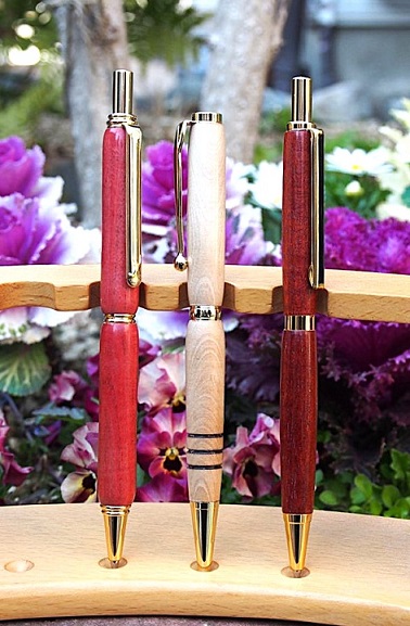 3人の作品です。左から、ピンクアイボリーのシャープペン、シカモアのボールペン、パドックのシャープペンです。