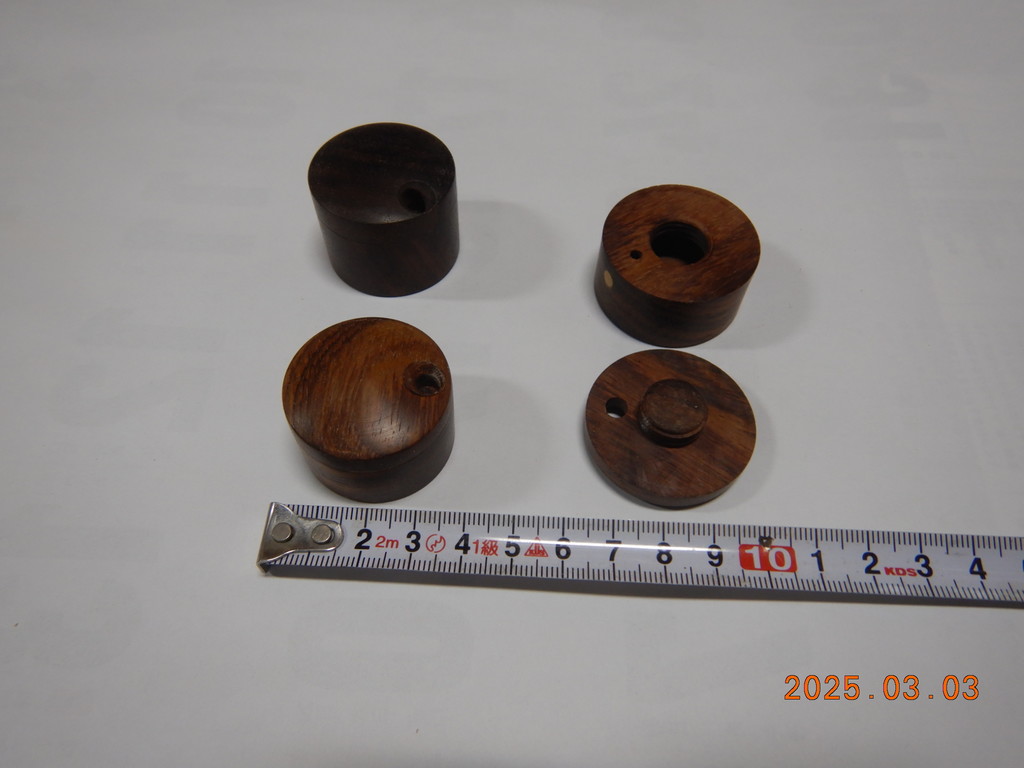 山下さんの楊枝入れを塗香入れにしたいと頼まれました。振り出し穴を明け中栓を付けるのは問題ありません完成した楊枝入れを改造した際は穴位置に方向本体に黒丸象嵌しましたが本番は穴の位置が分かるように線を入れてくれと言う、工数が増えました