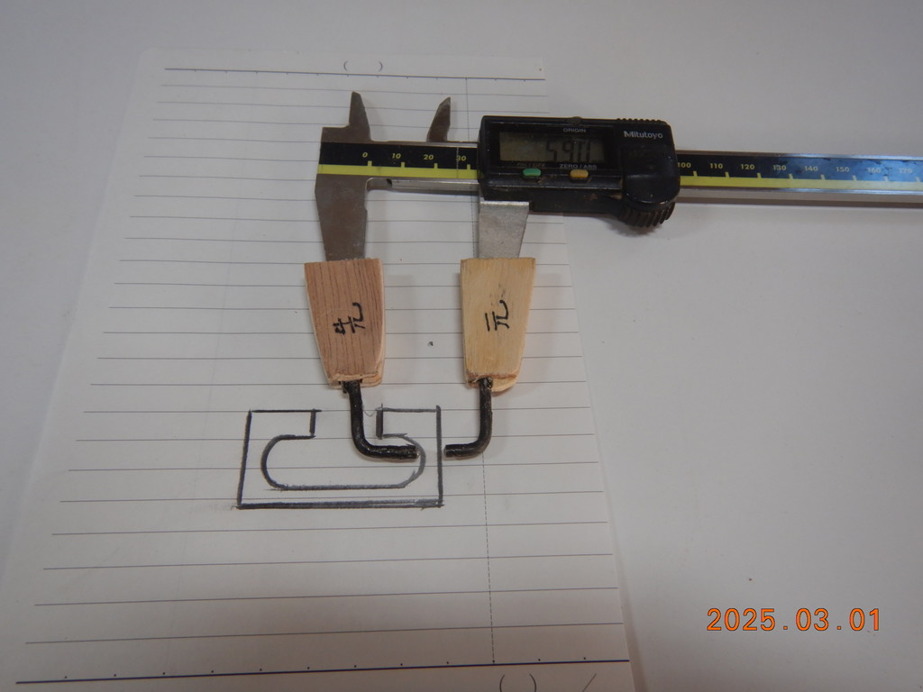 塗香入れの側面厚さ測定具、デジタルノギス先端に付けました