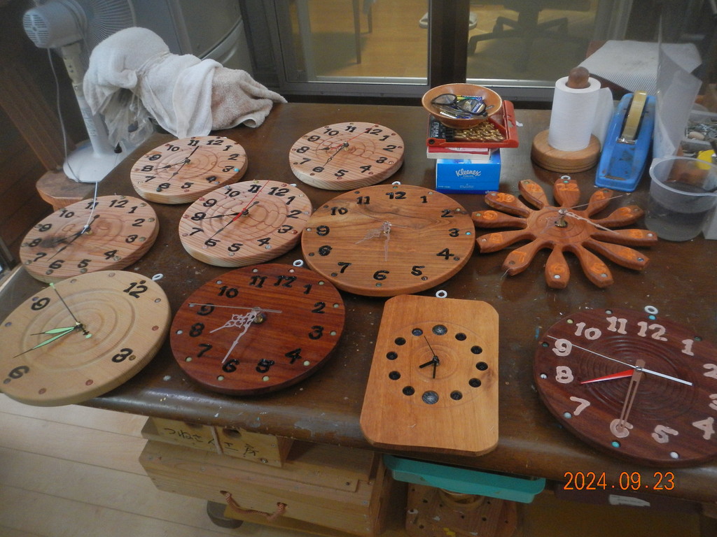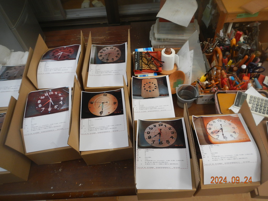 7月に頼まれていたDIY時計10個がやっと簡易した。涼しくなったのでam6:30~8:00までの朝仕事。箱詰めと写真・解説を貼り付けてOK。ご近所さんが手土産にするとの事。量産はこれが最後かも。あとはmy工房の展示用に何個が作るり。