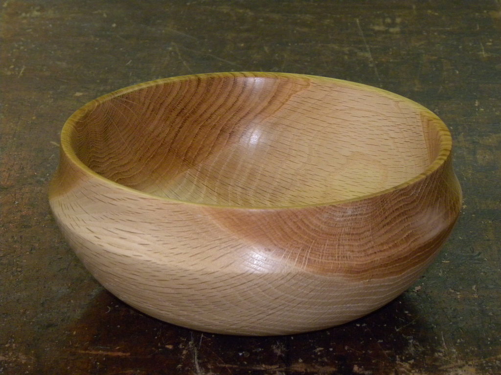 半年程前に粗挽きしておいた楢の器を仕上げました。直径265ミリ、高さ110ミリ程です。削りは固かったです。荏胡麻油を塗りました。